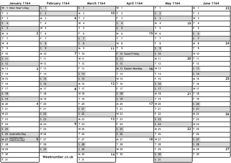 1164 calendar