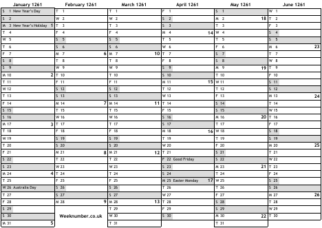 1261 calendar