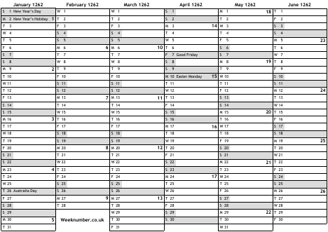 1262 calendar
