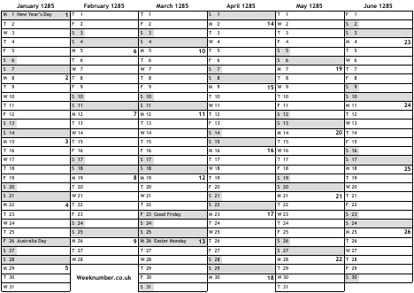 1285 calendar