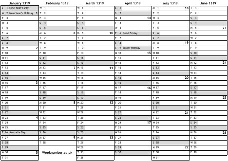 1319 calendar