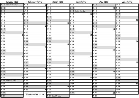 1396 calendar