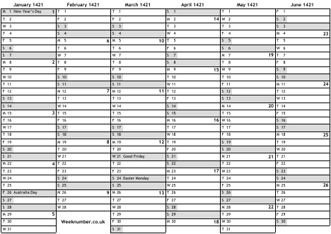 1421 calendar