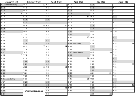 1430 calendar