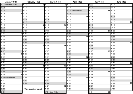 1458 calendar