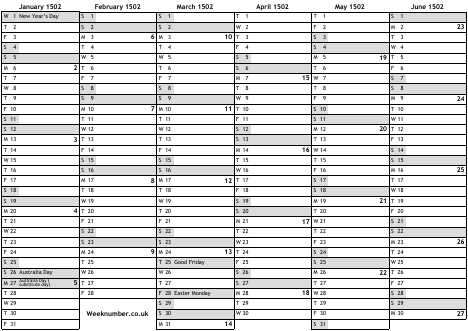 Australian holidays 1502
