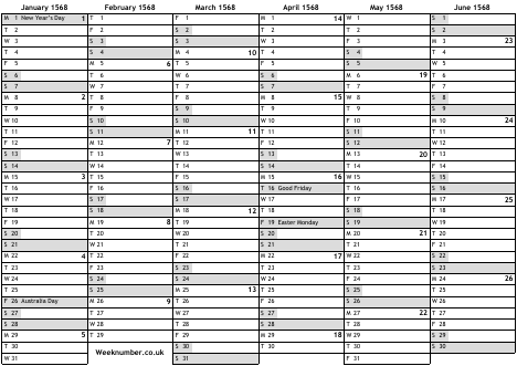1568 calendar