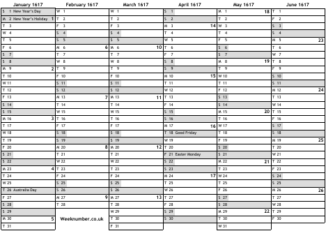 1617 calendar