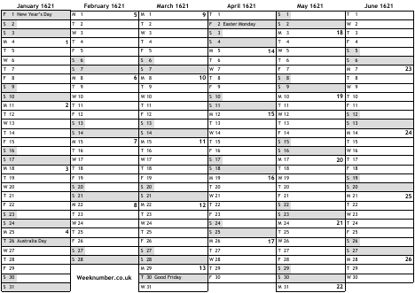 1621 calendar