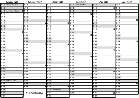 1689 calendar