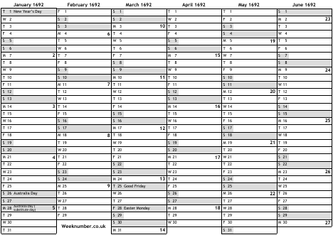 1692 calendar