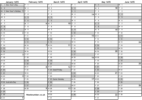 Australian holidays 1695