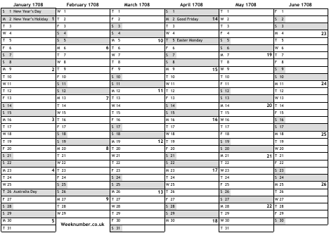 1708 calendar