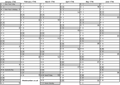 1746 calendar