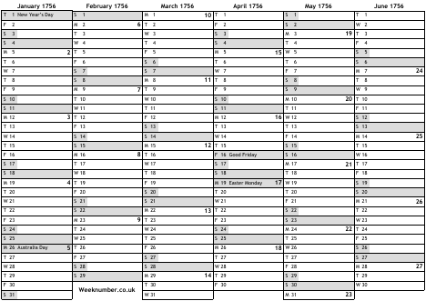 1756 calendar