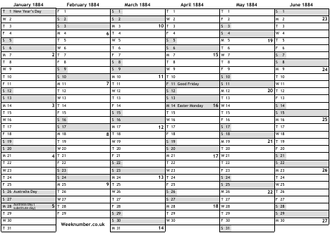 1884 calendar