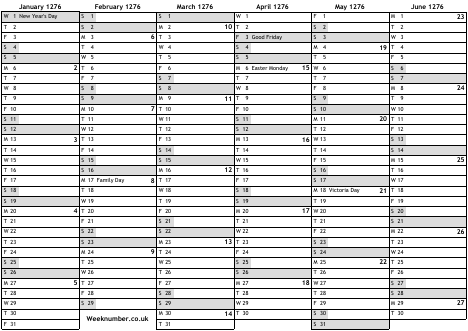 1276 calendar