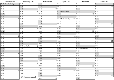 1292 calendar