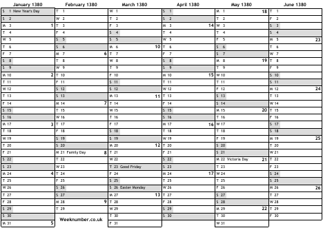 1380 calendar