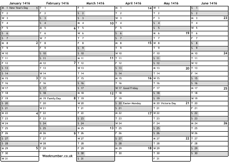 1416 calendar
