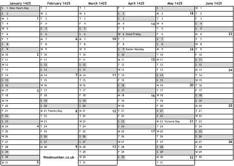 1425 calendar