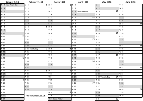 1458 calendar