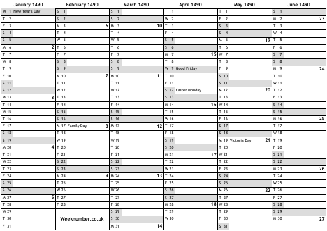 1490 calendar