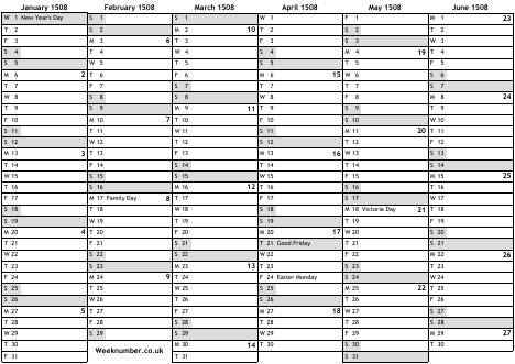 1508 calendar