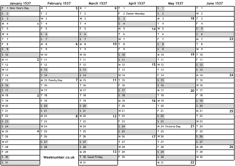 1537 calendar
