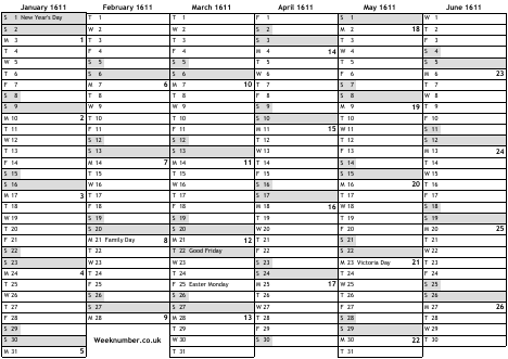 1611 calendar