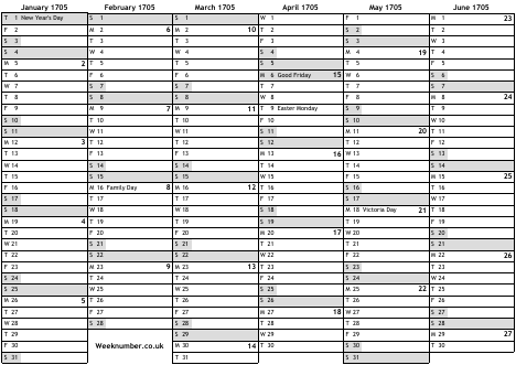 1705 calendar