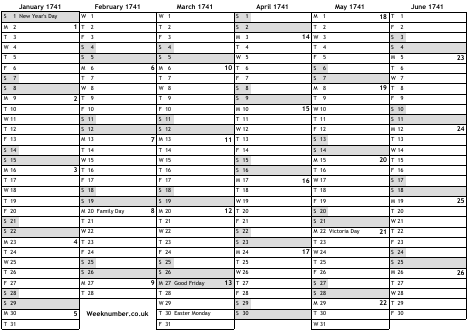 1741 calendar