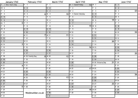 1743 calendar