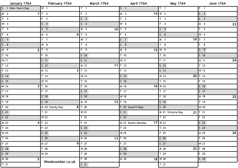 1764 calendar