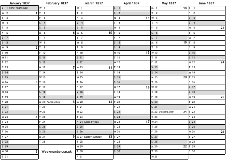 1837 calendar