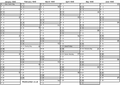 1840 calendar