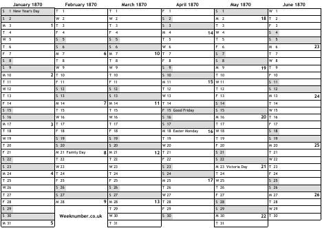 1870 calendar