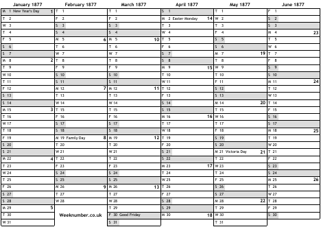 1877 calendar