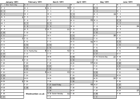 1891 calendar