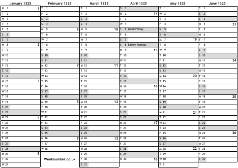 1325 calendar