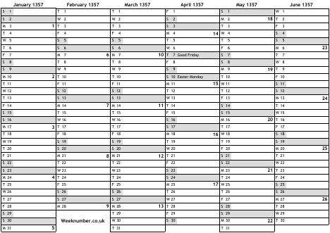 1357 calendar