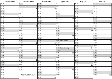 1462 calendar