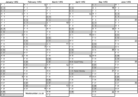 1492 calendar