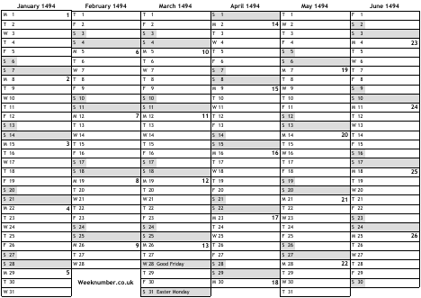 1494 calendar