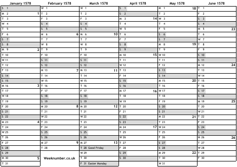 1578 calendar