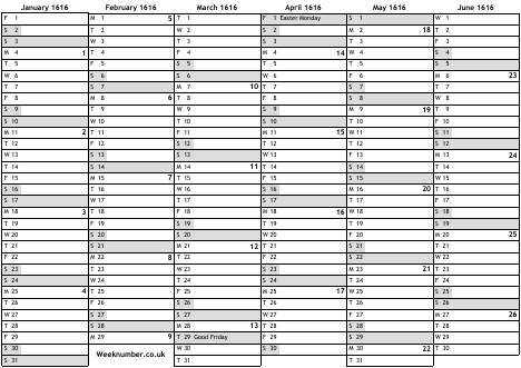 1616 calendar