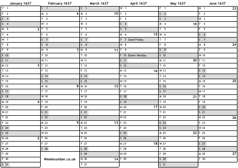 1637 calendar