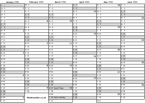 1741 calendar