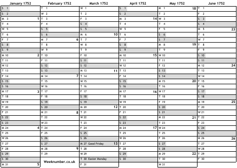 1752 calendar
