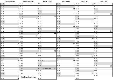 1780 calendar